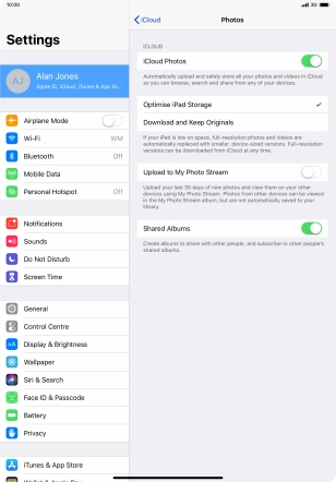 If you turn on the function, all new pictures on your tablet are synchronised with other devices via iCloud.