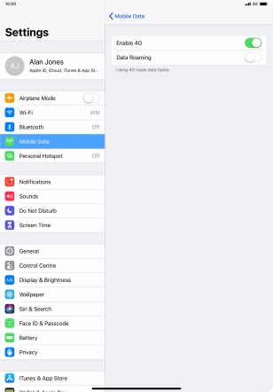 Turn data roaming on your Apple iPad Pro 11 iOS 12.1 on or off