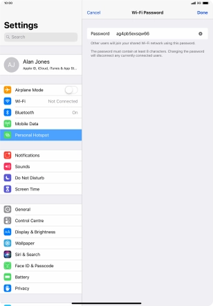 3. Key in the password for personal hotspot