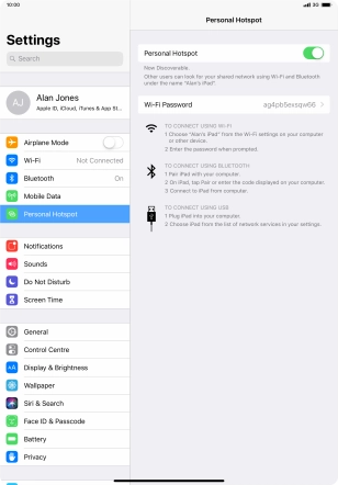 2. Turn on Wi-Fi hotspot