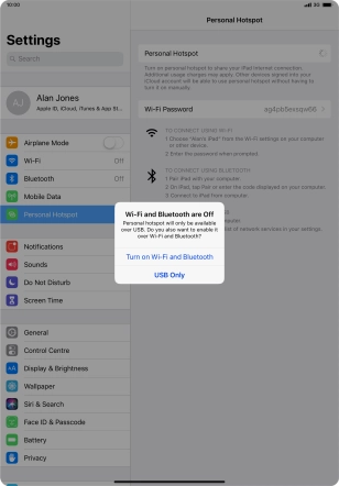 If Wi-Fi is turned on, press Wi-Fi and USB Only.