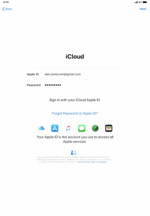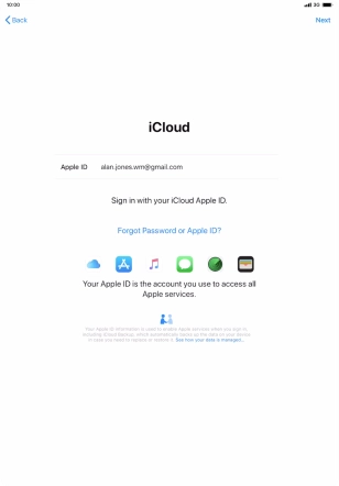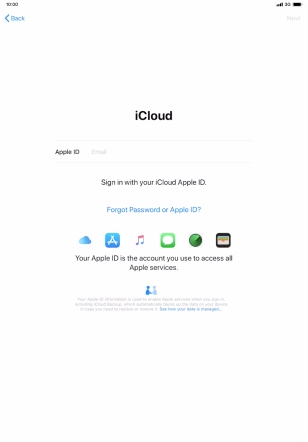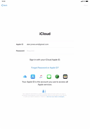 Press the field next to "Apple ID" and key in the username for your Apple ID.