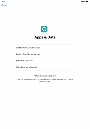 You can restore content of an iCloud backup when e.g. your tablet is activated for the first time and after a factory reset. To restore the content, you need to back up the tablet memory to iCloud.
