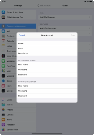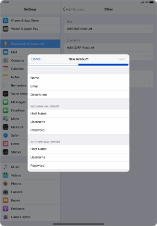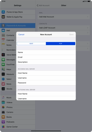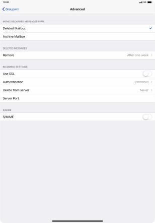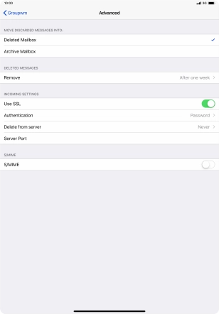 Press the required email account and follow the instructions on the screen to select settings for the specific account.