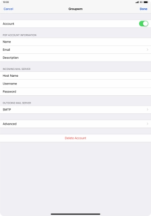 Press the name of the email account you've just set up.