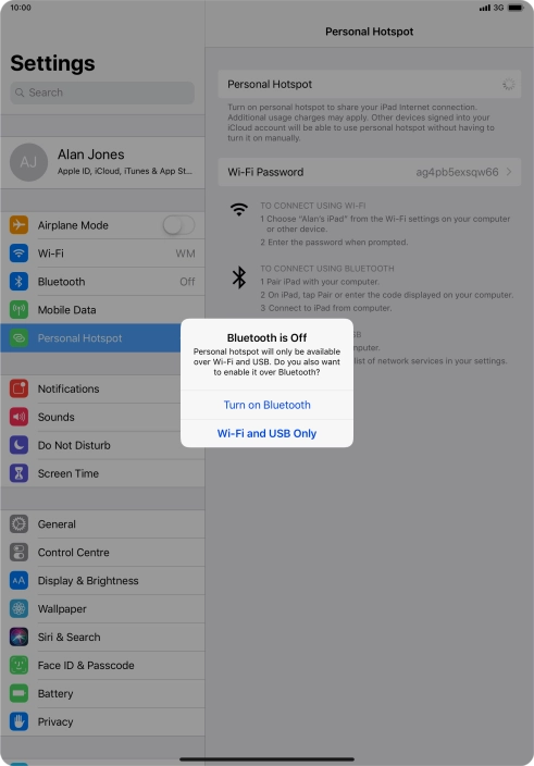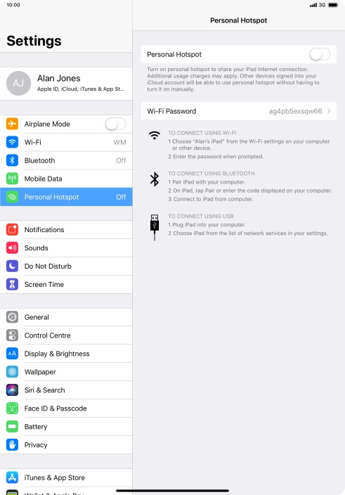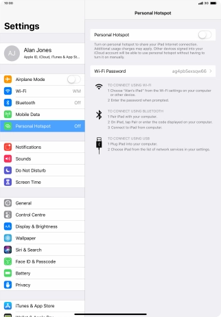 To use your tablet as a personal hotspot, you need to turn on the function and establish a connection from the other device to your tablet's hotspot.