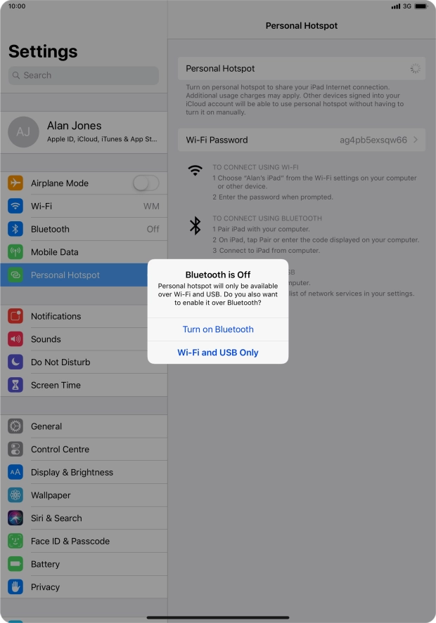 I can't use my Apple iPad Pro 11 iOS 12.1 as a personal hotspot