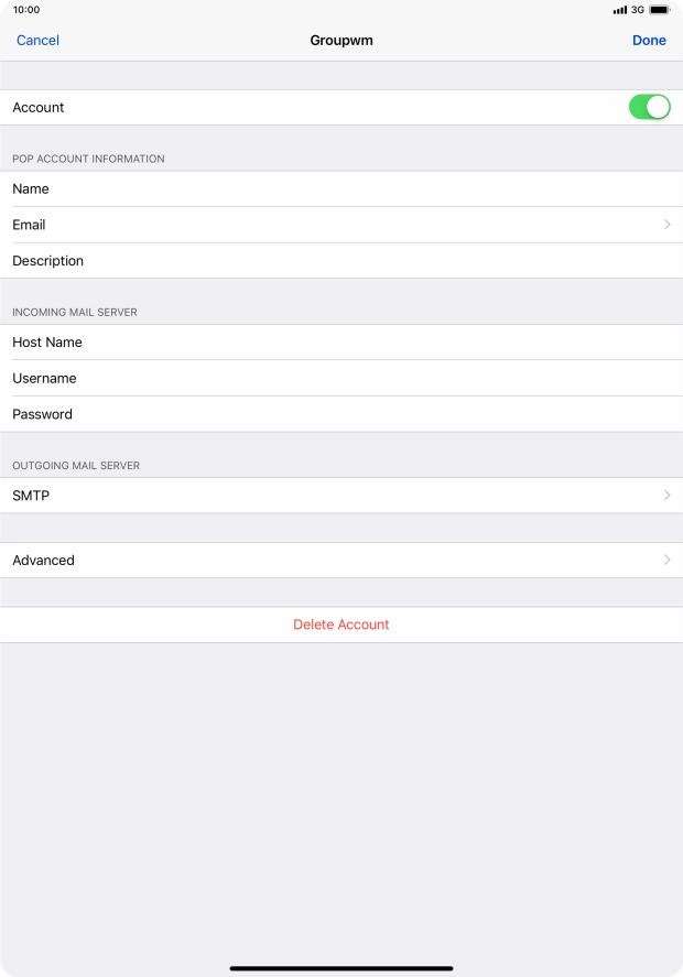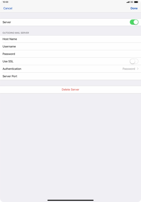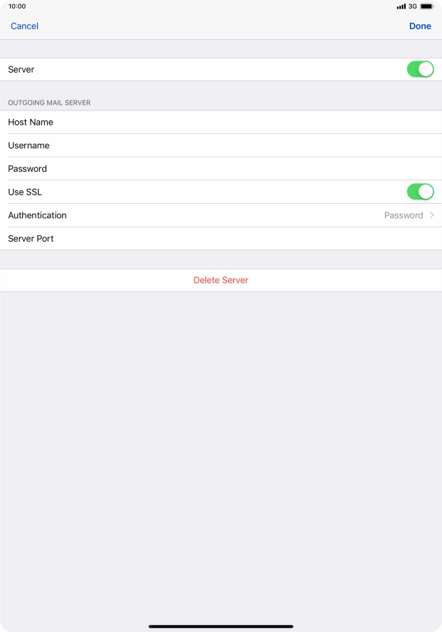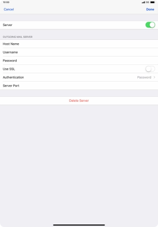 Press Password and key in the password for your email account. Please note that if you're using Vodafone's outgoing server, leave the password field empty.