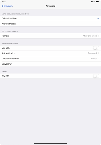 Press the required email account and follow the instructions on the screen to select settings for the specific account.