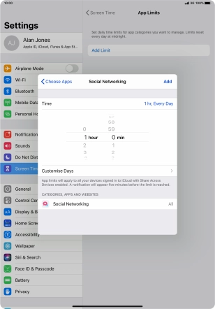 Press the add icon next to the required app to add it to the list of allowed apps during Downtime.