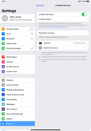 Turn GPS on your Apple iPad Pro 11 iPadOS 13.2 on or off