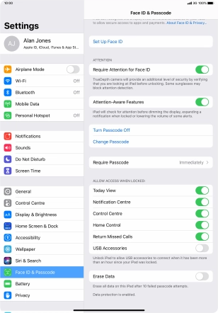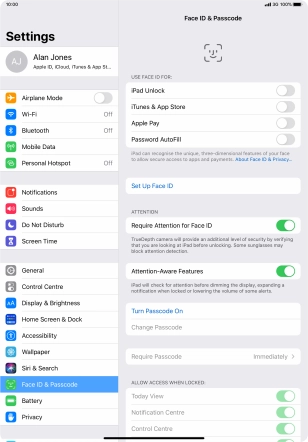 Turn use of lock code on your Apple iPad Pro 11 iPadOS 13.2 on or off