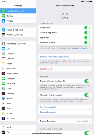 Press the indicator next to "iPad Unlock" to turn the function on or off.