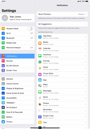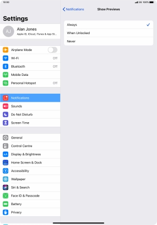 To select notification preview only when your tablet is unlocked, press When Unlocked.