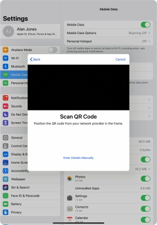 If you have problems scanning the QR code, press Enter Details Manually and follow the instructions on the screen to key in the activation information manually.
