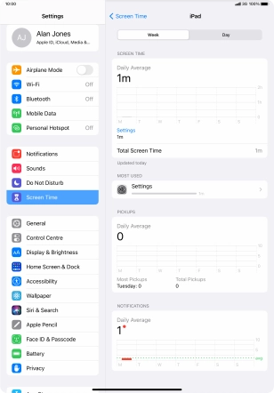 The use for the past week is displayed next to Total Screen Time.
