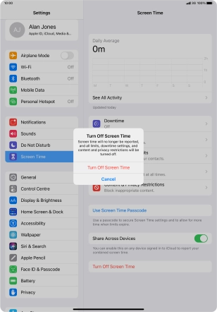 Press Turn Off Screen Time.