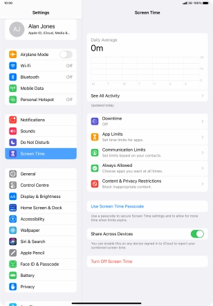 Press the indicator next to "Share Across Devices" and follow the instructions on the screen to turn total Screen Time across all of your devices on or off.