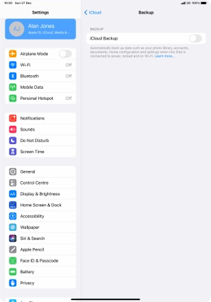 Press iCloud Backup.