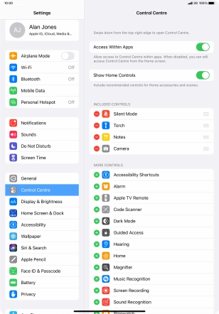 If you turn on the function, Control Centre can be used both on the home screen and while using other applications.