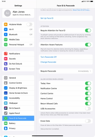 Turn use of lock code on your Apple iPad Pro 11 iPadOS 14.3 on or off