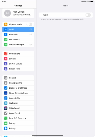 Press the indicator next to "Wi-Fi" to turn on the function.