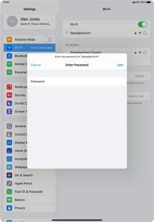 Press the required Wi-Fi network and key in the password for the Wi-Fi network.