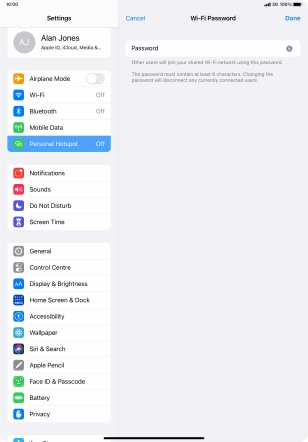 2. Key in the password for personal hotspot