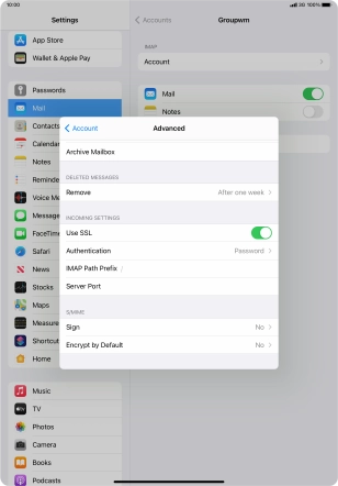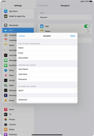 Press the name of the email account you've just set up.