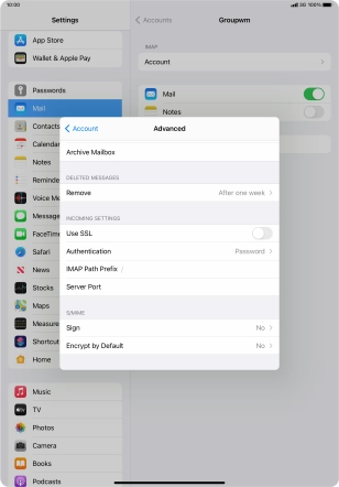 Press the required email account and follow the instructions on the screen to select settings for the specific account.