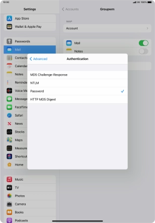 Press Password and key in the password for your email account.