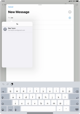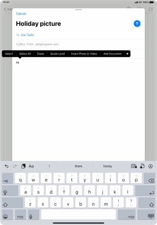Press the text input field and write the text for your email message.
