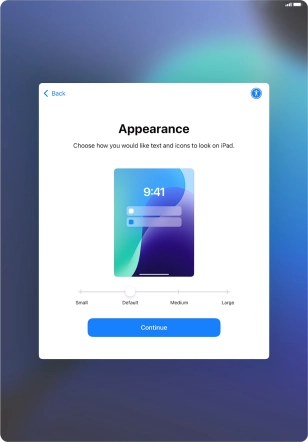 Select the required text and icon size on your tablet and press Continue.