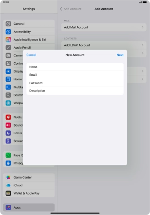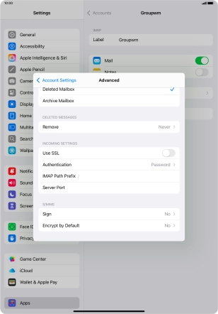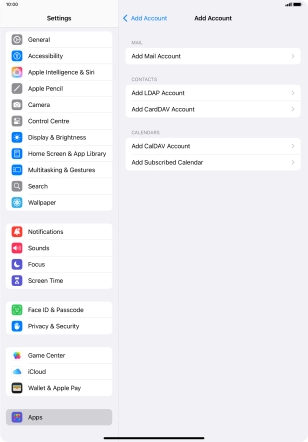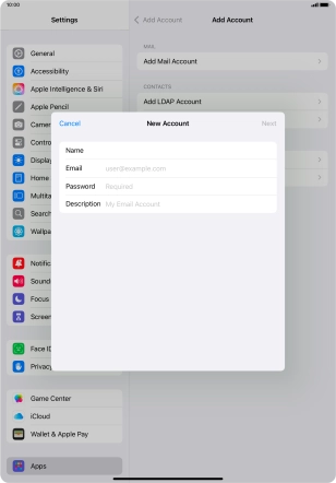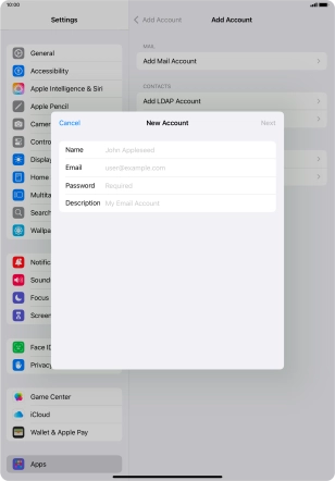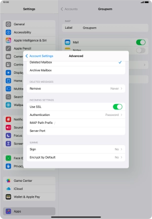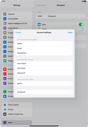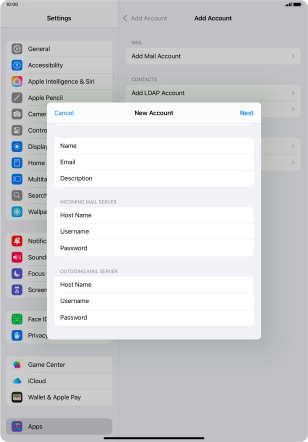 Press the required email account and follow the instructions on the screen to select settings for the specific account.