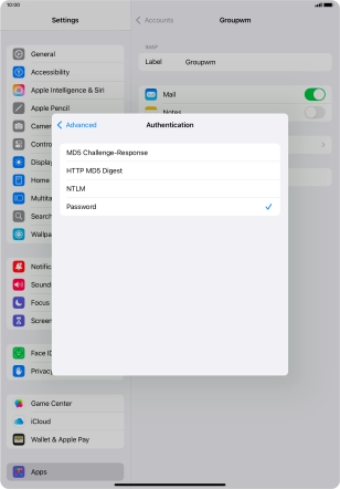 Press Password and key in the password for your email account.