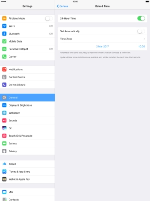 Set date and time on your Apple iPad Pro 12.9 (2015) iOS 10.1