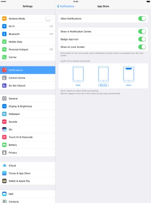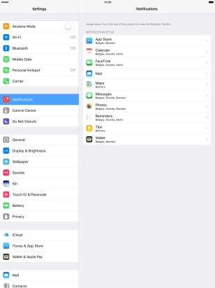 Press the indicator next to "Allow Notifications" to turn notifications for the selected application on or off.