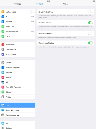Press the indicator next to "My Photo Stream" to turn the function on or off.