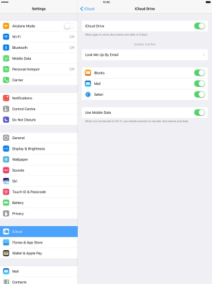 Press the indicator next to "iCloud Drive" to turn file synchronisation on or off.