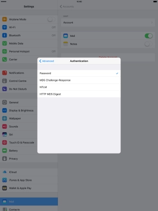 Press Password and key in the password for your email account.