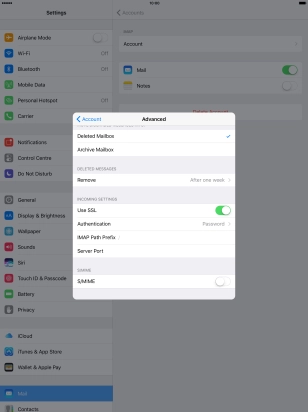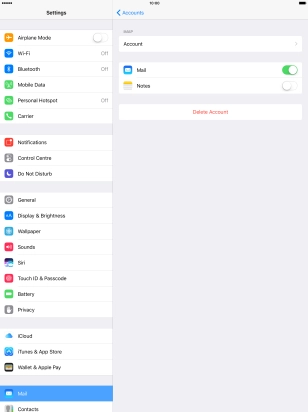Press the required email account and follow the instructions on the screen to select settings for the specific account.