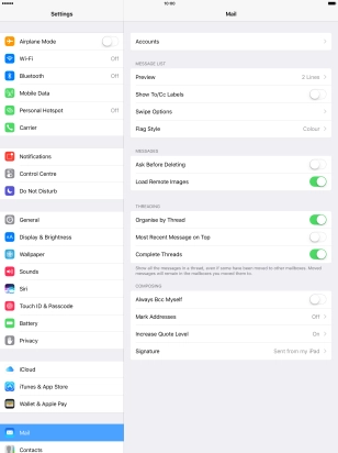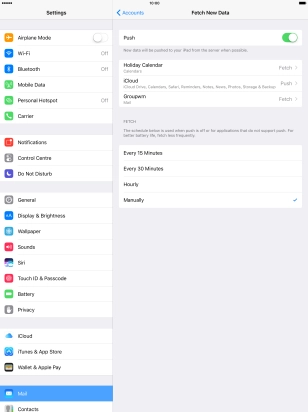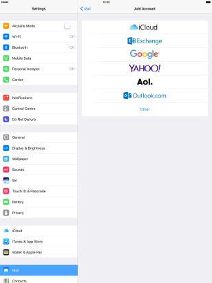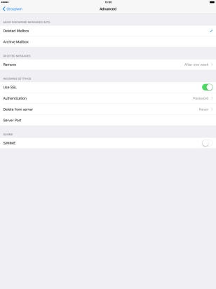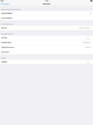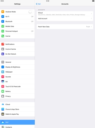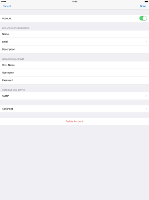 Press the required email account and follow the instructions on the screen to select settings for the specific account.