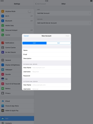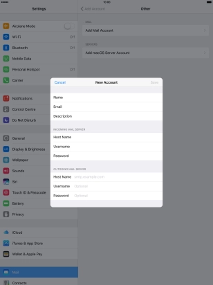 Press Username and key in the username for your email account. Please note that if you're using Vodafone's outgoing server, you have to leave the username and password fields empty.