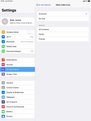 Press the required setting to select which contacts can call you even though Do Not Disturb is turned on.