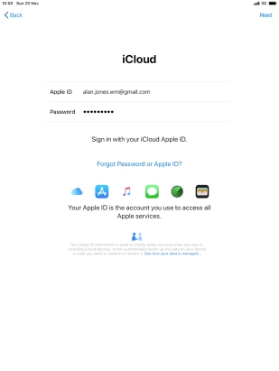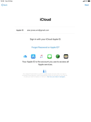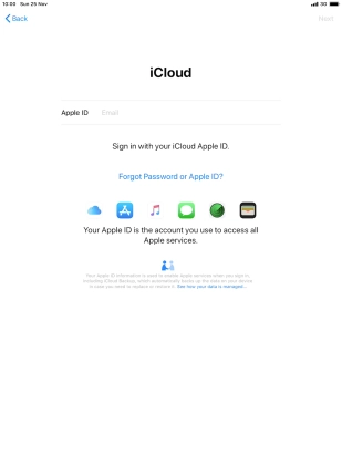 Press the field next to "Apple ID" and key in the username for your Apple ID.