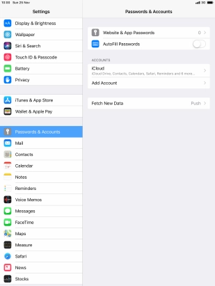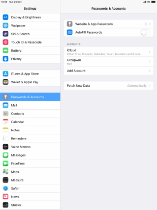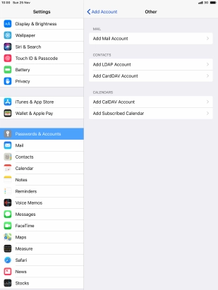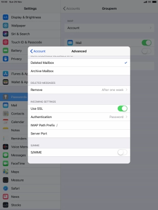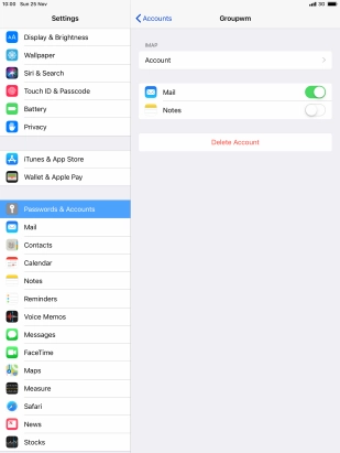 Press the required email account and follow the instructions on the screen to select settings for the specific account.