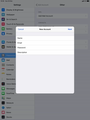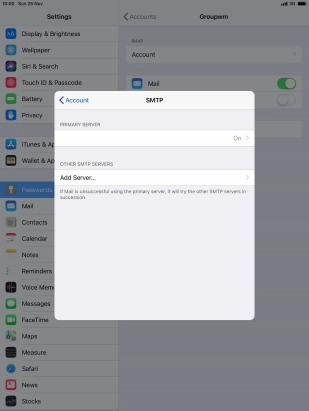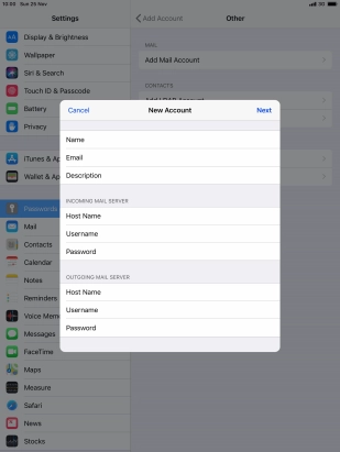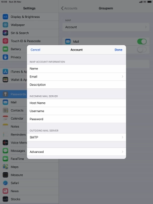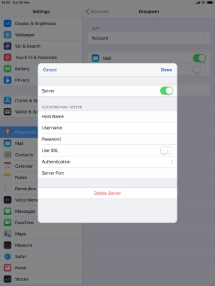 Press Password and key in the password for your email account. Please note that if you're using Vodafone's outgoing server, leave the password field empty.