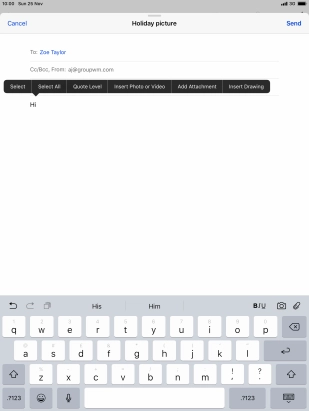 Press the text input field and write the text for your email message.