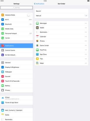 To sort notifications manually, press the organise icon next to the required menu item and drag it to the required position on the list.