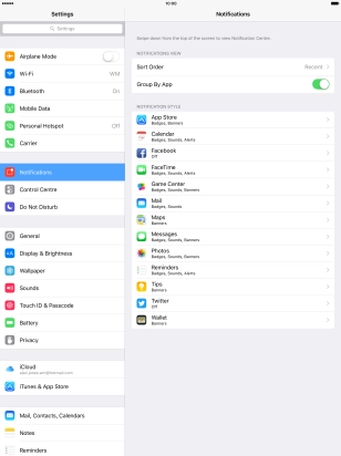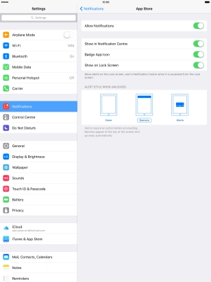 Press the indicator next to "Show in Notification Centre" to turn display of notifications in Notification Centre on or off.